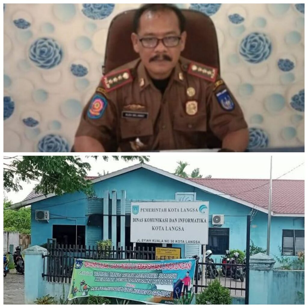 Kasatpol PP Langsa Rudi Selamat dan Kantor Dinas Kominfo Langsa. Foto (ist).