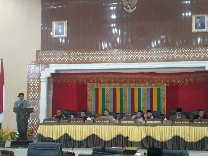 Ketua Komisi D DPRK Aceh Barat Daya (Abdya), Ikhsan, dalam Rapat Paripurna Penutupan Laporan Keterangan Pertanggung Jawaban (LKPJ) Bupati Abdya tahun anggaran 2021, Kamis (9/6/2022).