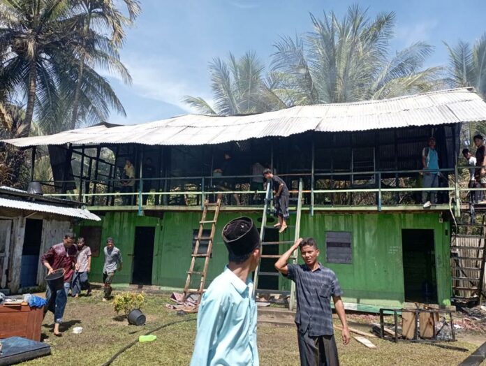 Analisaaceh.com Lhoksukon | Bangunan bilik santri Dayah Madinatuddiyah Babul Huda yang terletak di Desa Paloh Lada Kecamatan Dewantara Kabupaten Aceh Utara terbakar pada Sabtu (20/8/2022).