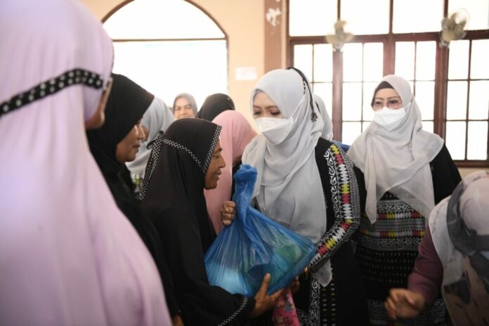 Analisaaceh.com, Banda Aceh | Ketua Badan Kontak Majelis Taklim (BKMT) Aceh, Dyah Erti Idawati, menyantuni belasan anak yatim dan masyarakat kurang mampu di Perumnas Neuhen, Gampong Neuhen, Kecamatan Mesjid Raya, Sabtu (9/4/2022).