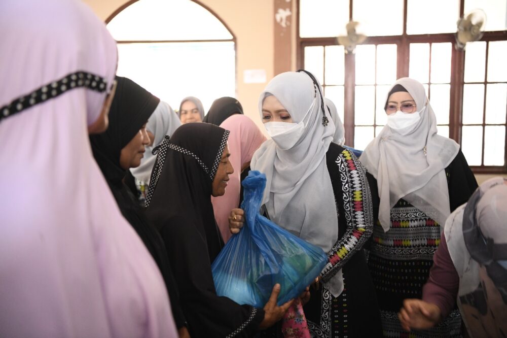 Analisaaceh.com, Banda Aceh | Ketua Badan Kontak Majelis Taklim (BKMT) Aceh, Dyah Erti Idawati, menyantuni belasan anak yatim dan masyarakat kurang mampu di Perumnas Neuhen, Gampong Neuhen, Kecamatan Mesjid Raya, Sabtu (9/4/2022).