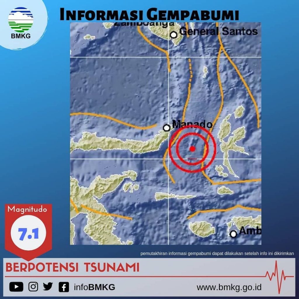 “Terus monitor informasi resmi dari instansi yang berwenang seperti BMKG dan BPBD,” tulis BMKG Sulawesi Utara di halam FB resminya.
