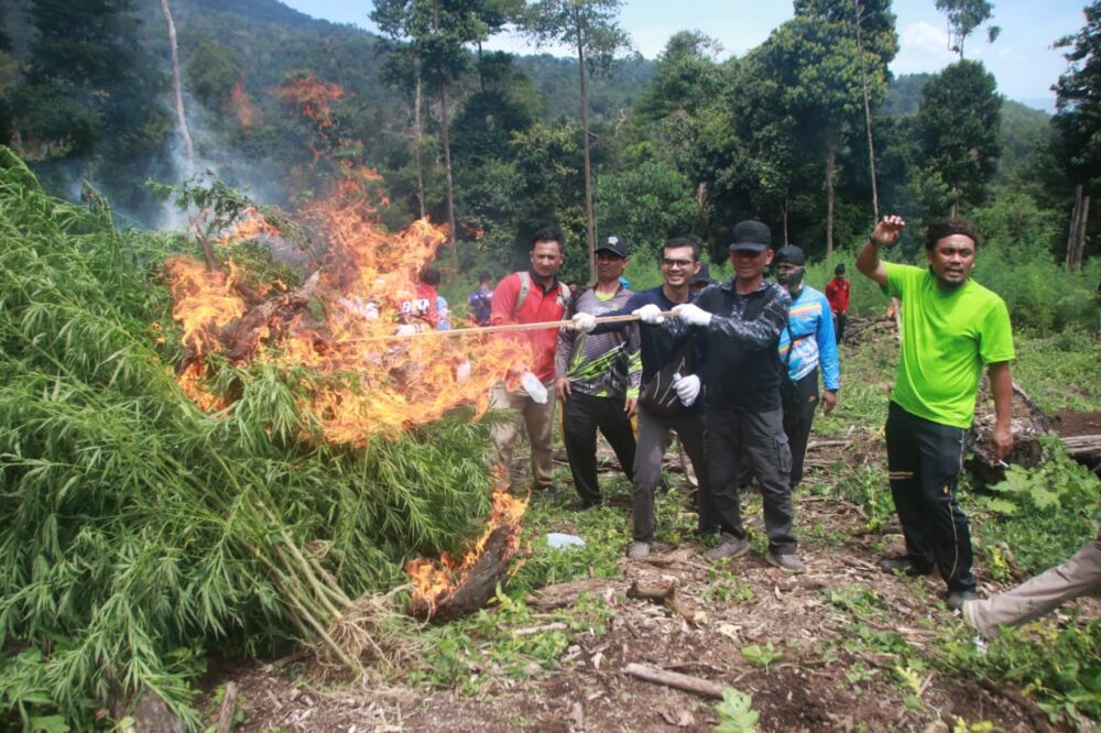 Pemusahan terhadap ribuan batang ganja ini dilakukan pada Rabu (18/5/2022) siang dengan melibat puluhan personel gabungan.