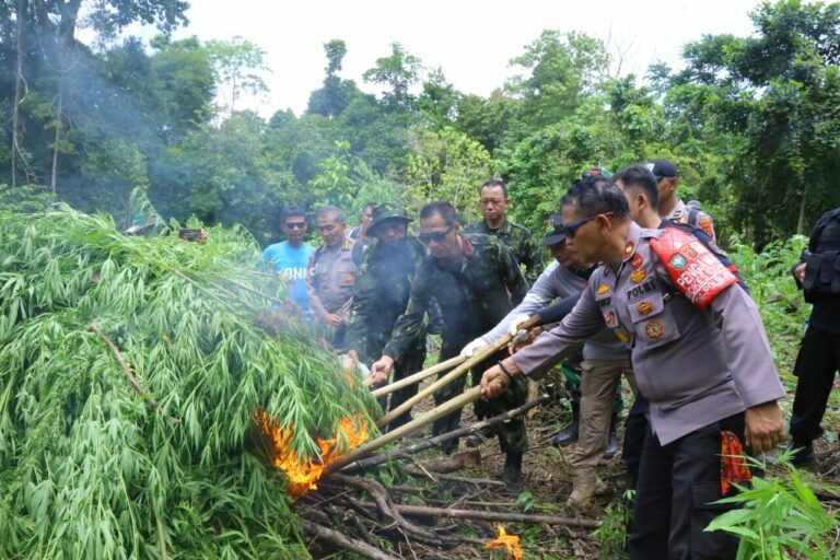 “Total personel yang diterjunkan dalam proses pemusnahan ladang ganja ini sebanyak 117 orang dan kita berhasil membabat lebih kurang 13 ribu batang ganja siap panen dengan medan yang terjal,” ujarnya.