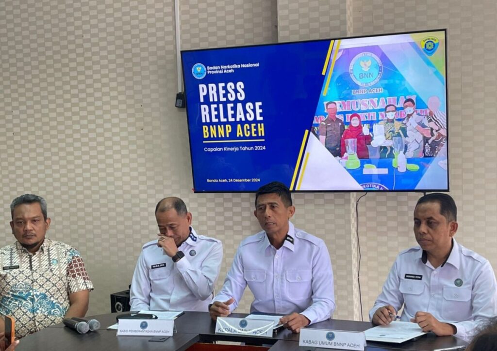 Dalam konferensi pers di Kantor BNNP pada Selasa (24/12/2024), Foto : Naszadayuna/analisaaceh.com