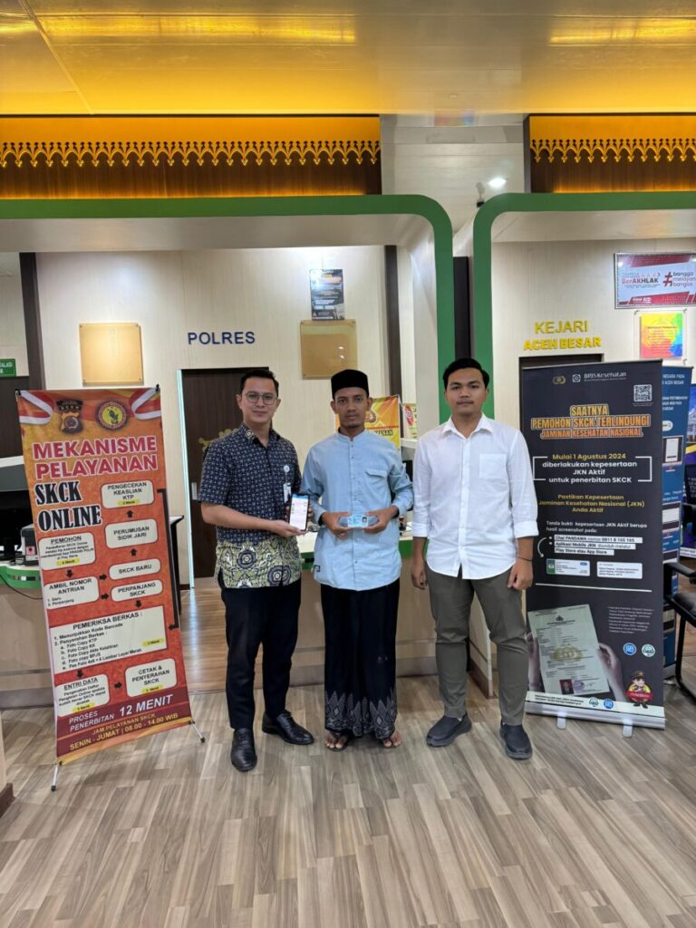 Analisaaceh.com, Aceh Besar | Polres Aceh Besar mulai menerapkan persyaratan kepesertaan Badan Penyelenggara Jaminan Sosial (BPJS) Kesehatan, aktif sebagai salah satu syarat pengurusan Surat Keterangan Catatan Kepolisian (SKCK) terhitung sejak tanggal 1 Agustus 2024.