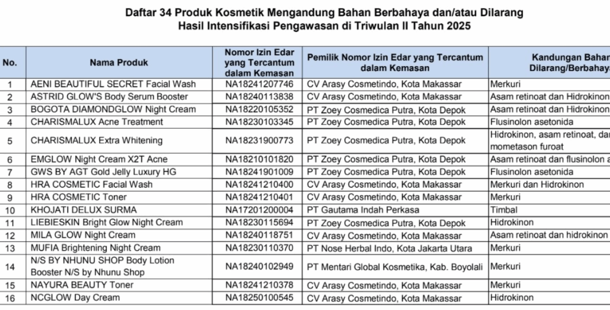 Temuan ini merupakan hasil intensifikasi pengawasan rutin BPOM terhadap kosmetik di peredaran selama periode April—Juni (triwulan II) 2025.