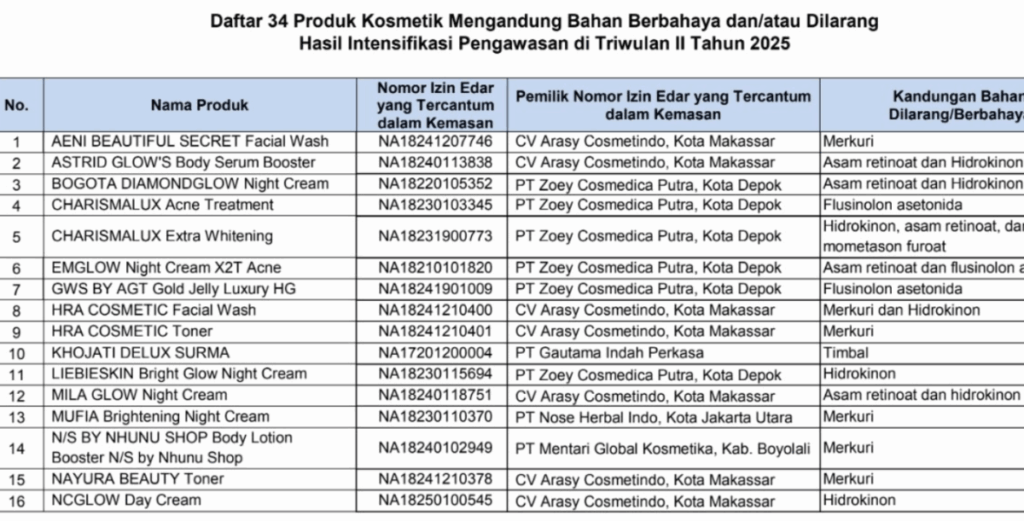 Temuan ini merupakan hasil intensifikasi pengawasan rutin BPOM terhadap kosmetik di peredaran selama periode April—Juni (triwulan II) 2025.
