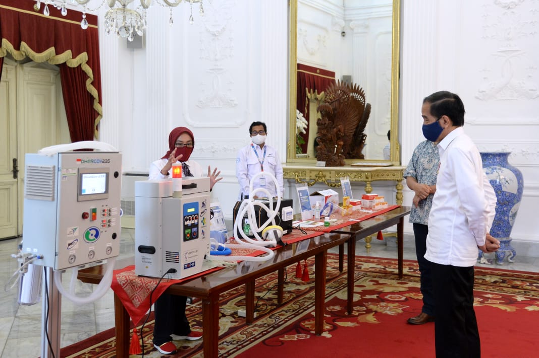 “Saya lihat sendiri, ada rapid test yang waktu saya tanya produksi berapa, sudah kira-kira 100 ribu (unit). PCR test kit sama, apakah sudah produksi, sudah, apakah sudah uji, sudah 100 ribu (unit). Kemudian ada emergency ventilator yang ini kemarin saya lihat ada karya BPPT, ITB, UI, UGM, PT Dharma, PT Poly Jaya, yang mulai dan ini tinggal produksinya,” ucap Jokowi dalam sambutan yang diunggah pada kanal YouTube Setpres.