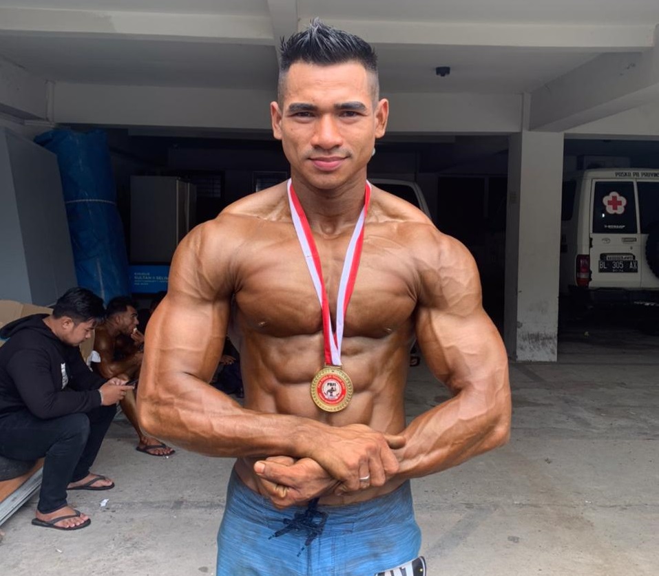 Analisaaceh.com, Lhokseumawe | Seorang atlet Binaraga mewakili Kota Lhokseumawe, Briptu Vikry lolos dalam event Prakualifikasi Pekan Olahraga Rakyat Aceh (Pra PORA) XII di Banda Aceh, Minggu (28/11/2021).