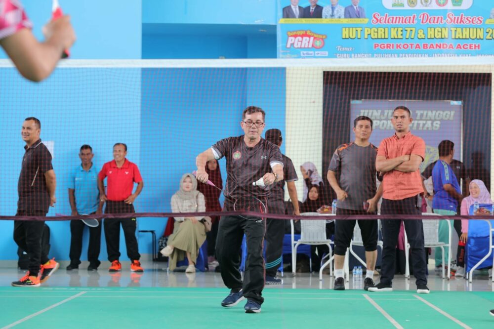 Analisaaceh.com, Banda Aceh | Pj Wali Kota Banda Aceh Bakri Siddiq resmi membuka event turnamen bulutangkis dalam rangka Hari Ulang Tahun Ke-77 Persatuan Guru Republik Indonesia (PGRI) Kota Banda Aceh dan Hari Guru Nasional (HGN) tahun 2022.