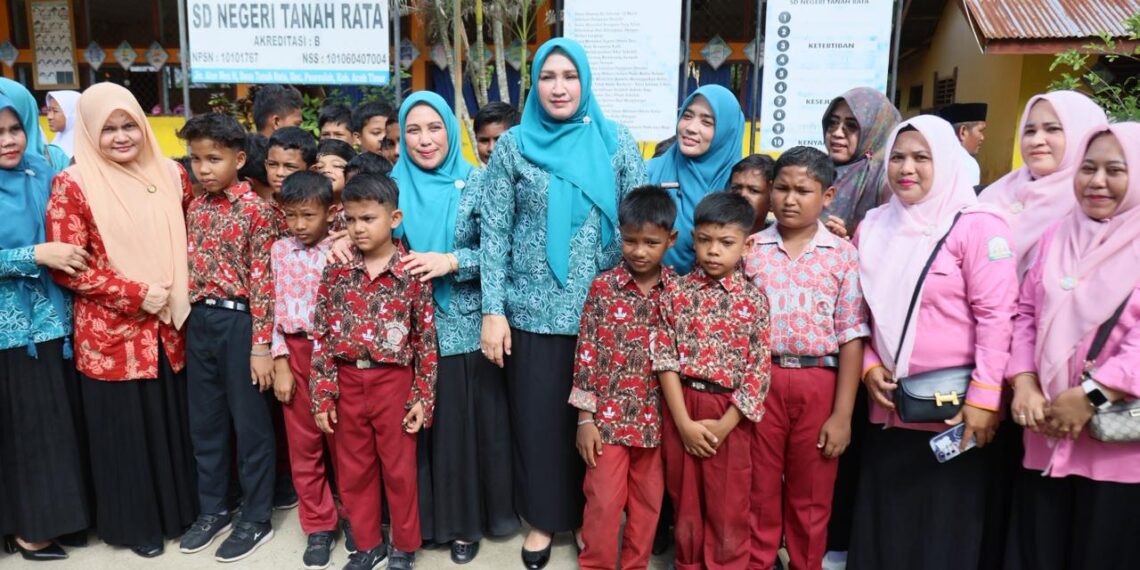 Analisaaceh.com, Aceh Timur | Bunda Guru Aceh Marlina Muzakir, didampingi Ketua Dharma Wanita Persatuan Aceh Malahayati, berkunjung SD Negeri Tanah Rata, Gampong Tanah Rata Kecamatan Peureulak, Rabu (15/4/2026).