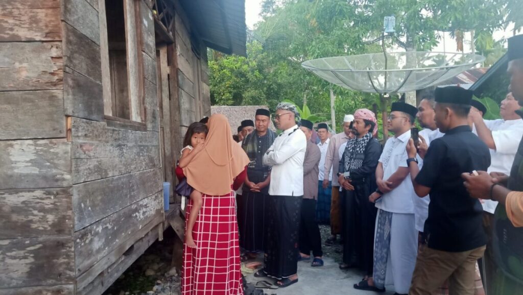 Bupati Abdya, Dr Safaruddin saat meninjau rumah tidak layak huni usai melaksanakan shalat subuh berjamaah di Mesjid Islahuddin Suak Nibong Kecamatan Tangan-Tangan, Kabupaten setempat, Jumat (18/4/2025). Foto: Ist