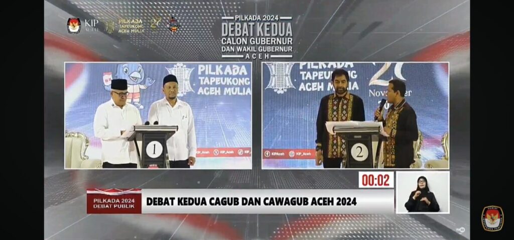 Analisaaceh.com, Banda Aceh | Debat kedua pasangan calon gubernur (Cagub) Aceh berlangsung panas dengan isu korupsi yang turut menyeret nama kedua kandidat. Acara debat ini digelar di The Pade Hotel, Aceh Besar, Jumat (1/11/2024) sekitar pukul 20.00 WIB.
