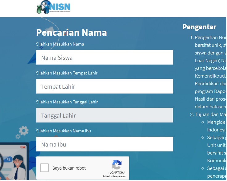 Cara Cek NISN Siswa SD, SMP dan SMA dengan NISN dan Nama Ibu Kandung