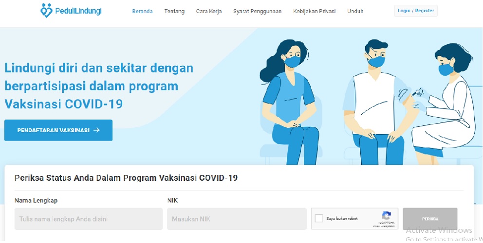 - Buka website https://pedulilindungi.id/