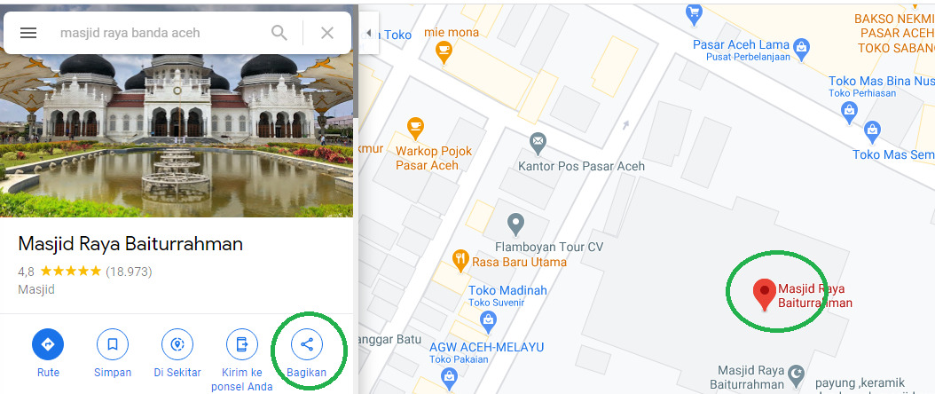 - Setelah lokasi ditentukan, maka klik bagikan seperti gambar di bawah ini