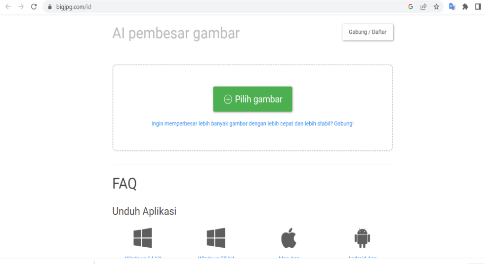 Berikut adalah langkah-langkah menggunakan Bigjpg.com: