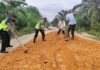 Personel Satlantas Perbaiki Jalan Berlobang Pada Operasi Patuh Seulawah