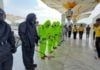 Cegah Corona, Polisi Lakukan Semprotan Disinfektan di Mesjid Raya Baiturrahman