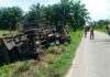 Truk Bermuatan Sawit Terbalik di Aceh Selatan