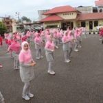 Analisaaceh.com, Lhokseumawe | Polres Lhokseumawe dan Bhayangkari gelar olahraga bersama dalam rangka memeriahkan Hari Kesatuan Gerak Bhayangkari (HKGB) ke-67 tahun 2019, Jum'at (08/10/2019).