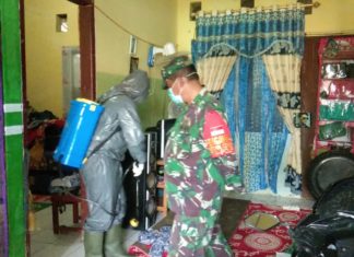 Tim Covid-19 dan Kodim Pidie Semprot Disinfektan di Asrama Koramil Glumpang Tiga
