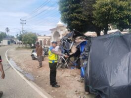 Laga Kambing Toyota Hiace vs Truk Fuso di Seubadeh Aceh Selatan, Lima Orang Luka-luka