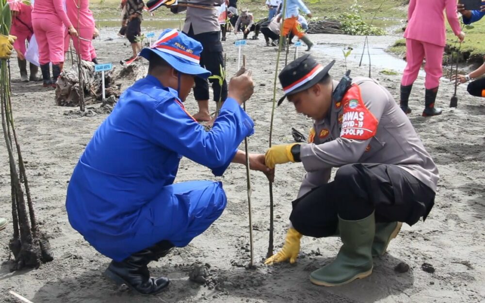 Cegah Abrasi, Polres Abdya Tanam Ribuan Mangrove di Pesisir Pantai Lama Tuha