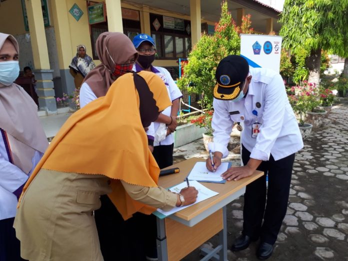 Analisaaceh.com, Meureudu | Dalam rangka mencegah peredaran narkoba di sekolah, Badan Narkotika Nasional Kabupaten (BNNK) Pidie Jaya berama SMAN 1 Meureudu melakukan penandatanganan Memorandum of Understanding (MoU) Fakta Integritas dan Sosialisasi Bersih dari Narkoba (Bersinar), Senin (14/9/2020).