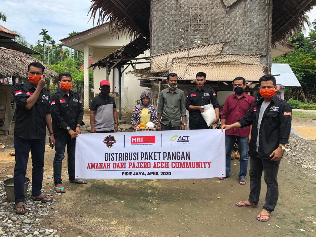 Koordinator MRI Pijay Muyasir mengatakan, bantuan paket tersebut didonasikan oleh sumbangan Pajero Aceh Community, berupa beras, minyak goreng, dan telur.
