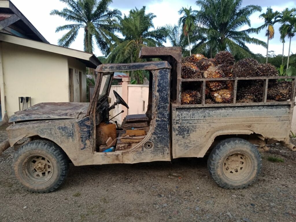 Saat diamankan pihak Security PTPN, 90 Tanda Buah Segar (TBS) seberat 1 Ton tersebut diangkut oleh pelaku menggunakan mobil Daihatsu Thaf GT 150.