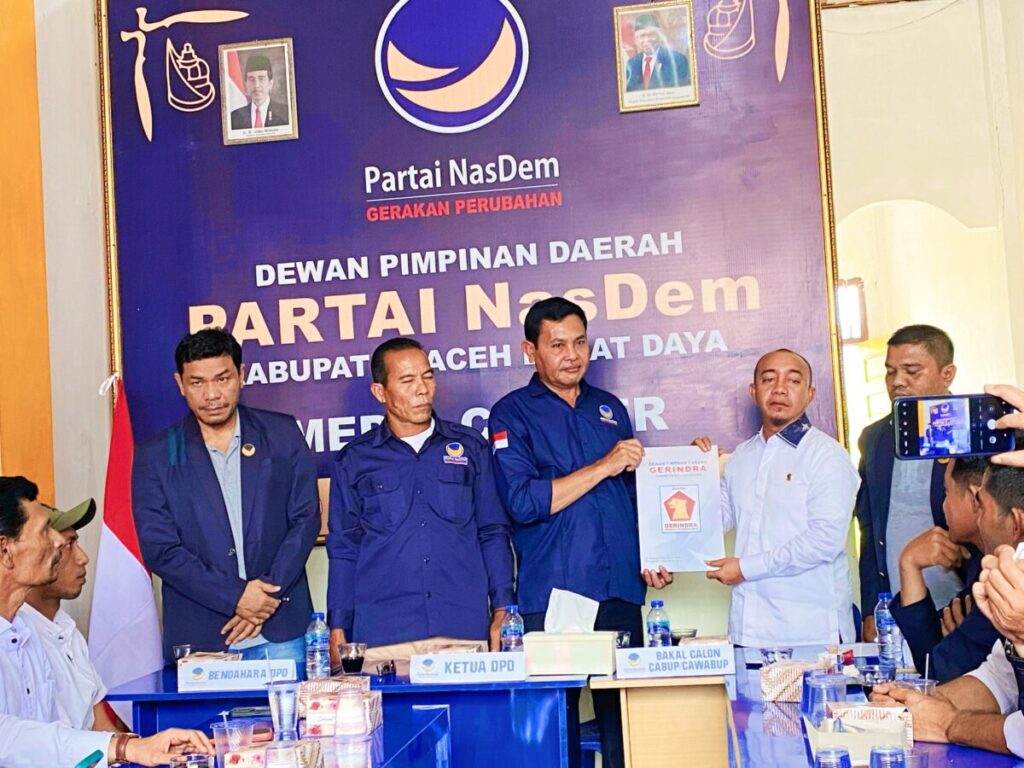“Semangat NasDem sangat sejalan dengan semangat Pak Waka. Kecintaan beliau untuk Kabupaten Abdya sudah ia buktikan. Banyak sektor pembangunan yang ia bawa ke kabupaten kita ini, baik itu keagamaan, sosial, infrastruktur, olahraga, dan lain sebagainya. Tentu besar harapan kami NasDem bersama-sama dengan Gerindra menjadi partai pengusung dan pendukung Dr Safaruddin di Pilkada 2024,” harap Abi Roni.