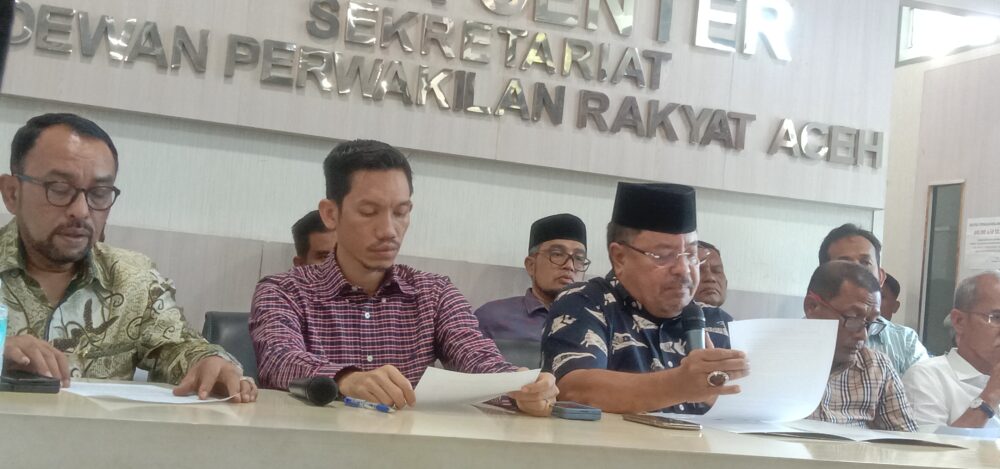“Setelah penyampaian nota keuangan dan rancangan Qanun Aceh tentang APBA Tahun anggaran 2024 yang disampaikan oleh PJ Gubernur Aceh, DPRA telah mengundang tiga kali PJ Gubernur untuk duduk bersama dengan Badan Anggaran DPR Aceh namun undangan tersebut hanya dihadiri oleh Tim TAPA,” ujar wakil DPRA,  Teuku Raja Keumangan saat konferensi pers pimpinan dan para ketua Fraksi DPRA di Sekretariat DPR Aceh Selasa (31/10/2023).