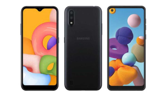 Selain dari spesifikasi nya, sedikit penampakan dari ponsel tersebut juga turut terlihat. Tampak disana bahwa Galaxy M01 ini memiliki desain yang sama persis dengan Galaxy A01, layarnya memenuhi bagian depan smartphone dan juga turut adanya ‘poni’ waterdrop.