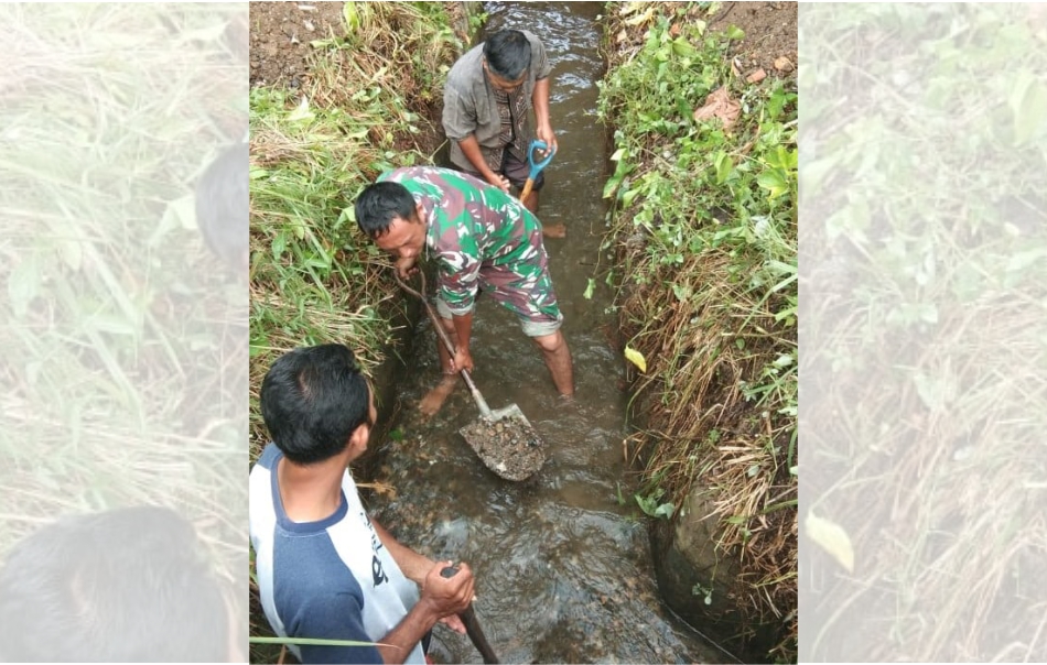 ANALISAACEH.COM | Aceh Selatan − Warga Masyarakat Tani Gampong Pisang, Tengah Pisang, Cacang, Kota Palak, Pawoh dan Gampong Dalam bersama Babinsa Kec. Labuhanhaji, Kab. Aceh Selatan sejak pukul 07:30 WIB, Selasa (13/8/2018), melaksanakan kegiatan gotong royong pembersihan dan pengerukan sedimen pada saluran irigasi Banda Sundai Gampong Pisang dan Hulu Pisang yang merupakan terusan dari saluran irigasi Banda Gadang.