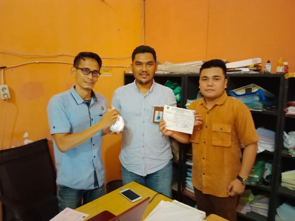 Ketua YARA Subulussalam, Edi Sahputra Bako didampingi Koordinator Paralegal Bustra saat menyerahkan koin hasil penggalangan kepada Badan Pengelolaan Keuangan Daerah (BPKD) Kota Subulussalam pada Rabu (16/3/2022).