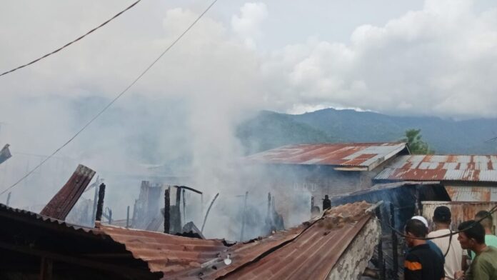 Kebakaran tersebut diduga dipicu oleh aksi orang dalam gangguan jiwa (ODGJ) yang membakar salah satu rumah hingga api merambat ke bangunan lain di sekitarnya.