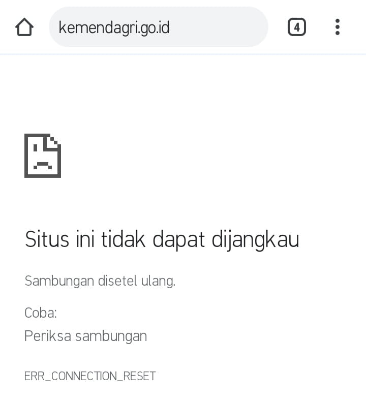 Hingga Senin (23/9/2019) pagi, portal beralamat www.kemendagri.go.id tersebut belum dapat diakses.