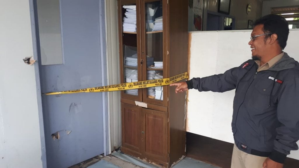 Kejadian “teror” dengan cara perusakan kantor langsung dilaporkan oleh Plt Kadis PUPR, Ir. Khaidir ke aparat kepolisian untuk segera ditangani dengan baik secara hukum.