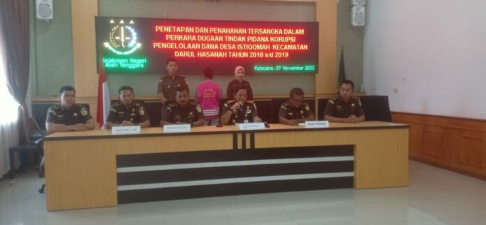 Analisaaceh.com, Kutacane | Kejaksaan Negeri (Kejari) Aceh Tenggara menahan mantan Kepala Desa Istiqomah, Kecamatan Darul Hasanah karena diduga melakukan tindak pidana korupsi alokasi dana desa tahun anggaran 2018 dan 2019.