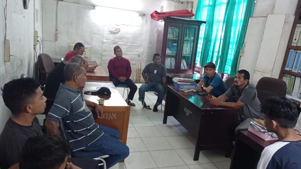 Mediasi antar desa terkait kasus khalwat yang terjadi di Dusun Pendidikan Gampong Paya Bujok Seulemak Kecamatan Langsa Baroe, Senin (1/4/2023) malam. Foto Chariril/Analisaaceh.com