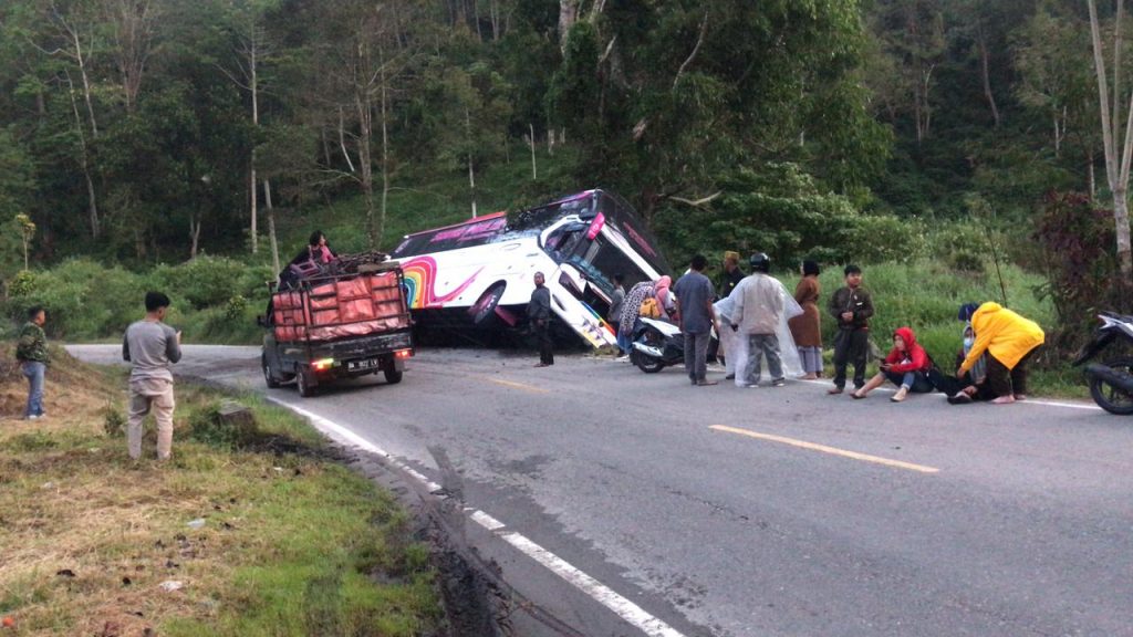 Analisaaceh.com, Redelong | Bus penumpang Putra Pelangi terperosok ke parit di jalan Bireuen-Takengon tepatnya di Kampung Relung Gunung, Kecamatan Wih Pesam, Kabupaten Bener Meriah.