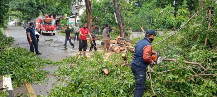 Analisaaceh.com, Aceh Besar |Â Angin kencang yang melanda wilayah Kabupaten Aceh Besar, mengakibatkan pohon tumbang di sejumlah lokasi yang menutupi badan jalan serta menimpa rumah warga, Sabtu (19/9/2020).
