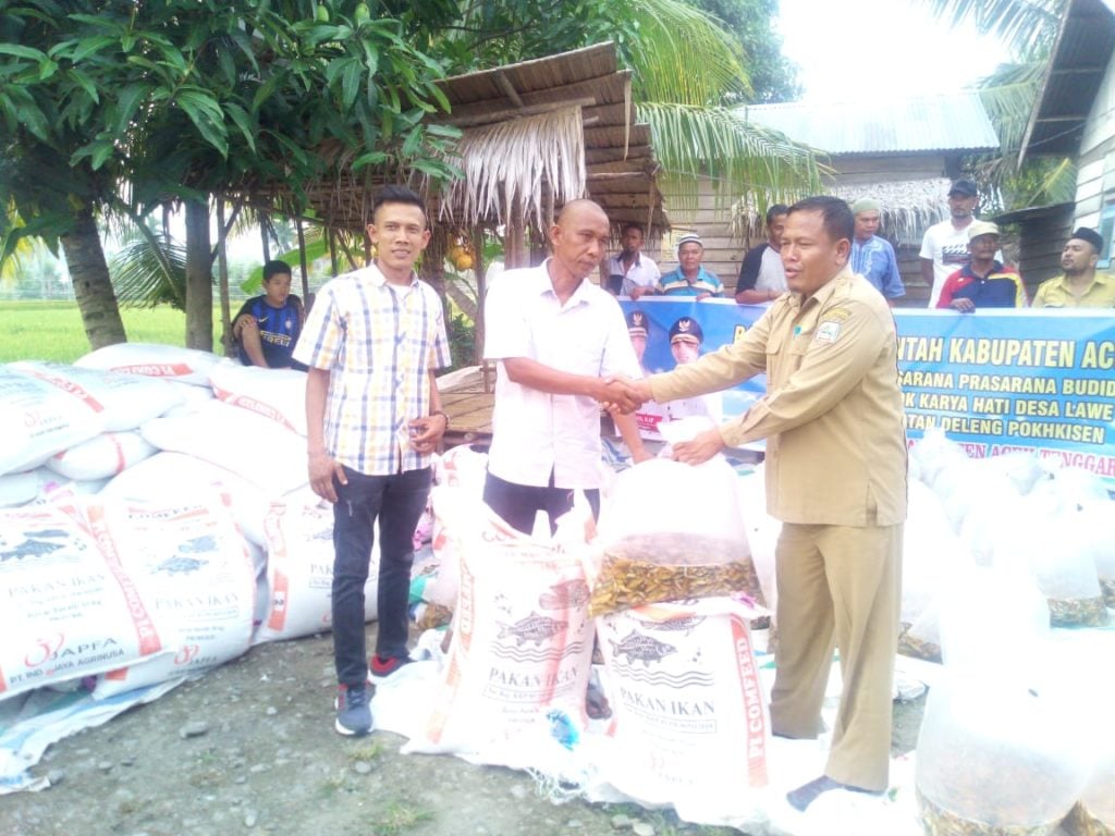 Analisaaceh.com, Kutacane | Dinas Perikanan Kabupaten Aceh Tenggara serahkan paket bantuan sarana dan prasarana (Sarpras) budidaya ikan mas kepada kelompok Karya Hati di Desa Lawe Pangkat Kecamatan Deleng Pokhisen, Senin (23/9/2019).