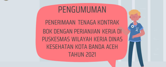 Analisaaceh.com, Banda Aceh | Dinas Kesehatan Kota Banda Aceh membuka penerimaan tenaga kontrak Bantuan Operasional Kesehatan (BOK) dengan perjanjian kerja di puskesmas pada Tahun Anggaran 2021.