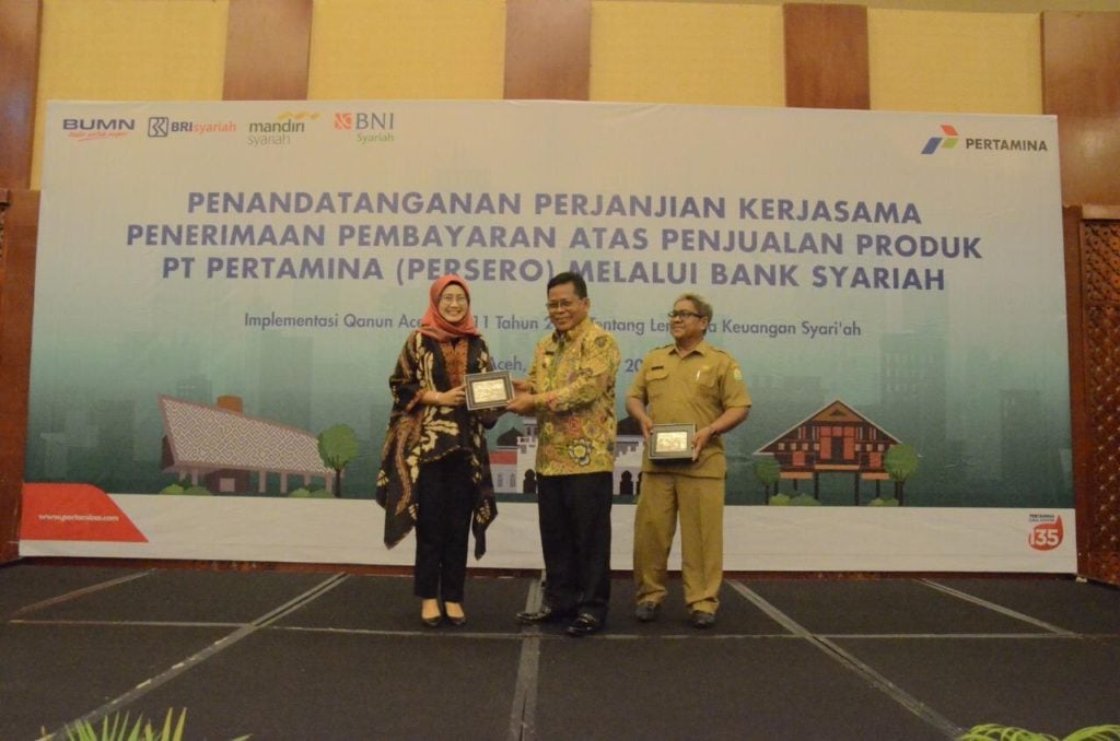 Dukungan tersebut juga ditindaklanjuti dengan penandatanganan perjanjian kerjasama penerimaan pembayaran atas penjualan produk Pertamina dan Bank melalui Bank Syariah, dimana setiap produk Pertamina di Aceh transaksi nya dilakukan dengan sistem syariah. Kebijakan ini dilakukan sebagai bentuk dukungan Pertamina terhadap implementasi Qanun Nomor 11 tahun 2018 tentang Lembaga Keuangan Syariah.