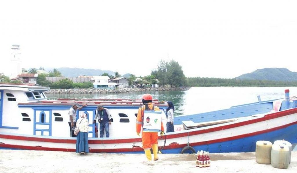 Dompet Dhuafa Aceh melalui posko Covid-19 yang didirikan di Pulau Nasi mengadakan progam Cekal (Cegah Tangkal) Covid-19. Salah satu yang dilakukan yaitu dengan penyemprotan kapal nelayan dengan cairan desinfektan, Sabtu, (11/04/2020)