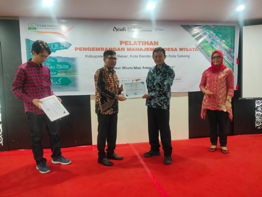 Pelatihan itu digelar sejak 9 – 11 Juni 2022. Untuk peserta dari Banda Aceh yaitu Desa Wisata Lampulo, Ulee Lheu dan Punge Blang Cut. Kemudian dari Kabupaten Aceh Besar, diikuti oleh Gampong Nusa dan Lubok Sukon serta dari Kota Sabang diikuti Desa wisata Jaboi, Aneuk Laot dan Iboih.