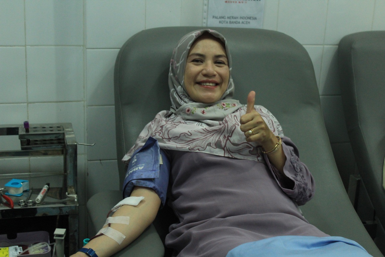 “Alhamdulillah lega dan puas rasanya telah sukses mendonorkan darah. Sebelumnya ada rasa takut. Namun setelah pengalaman pertama ini, saya justru ingin datang dan mendonorkan darah lagi. Insya Allah 2 bulan ke depan saya akan datang dan mendonorkan darah lagi. Semoga bermanfaat untuk pasien yang membutuhkan. Saya siap siaga untuk menjadi pendonor tetap bagi pasien thalassemia,” ujar Istri Sekda Aceh itu.